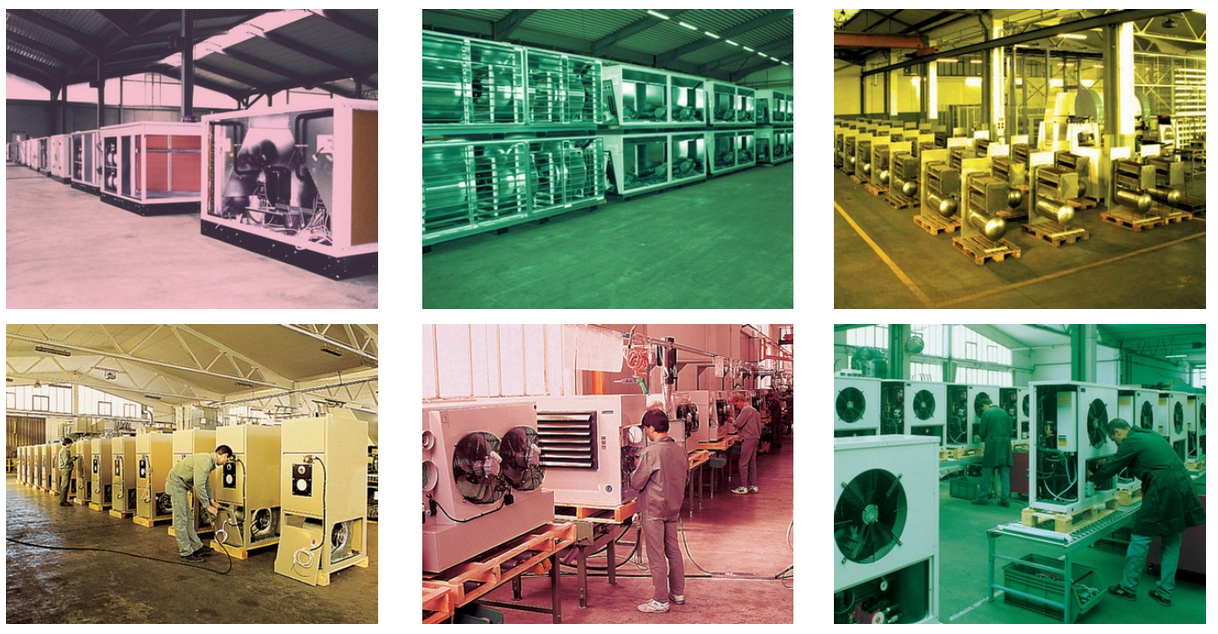 Уже более 40 лет Tecnoclima S.p.A. разрабатывает и производит системы воздушного отопления для отопления промышленных, бытовых, торговых и сельскохозяйственных помещений, а также для использования в качестве временных систем отопления и в производственных процессах. Среди систем, работающих на газу и жидком топливе компания предлагает: