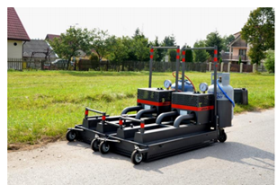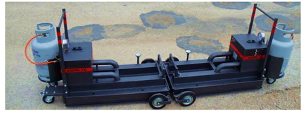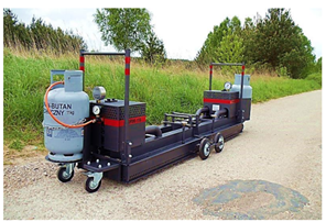 Инфракрасная горелка специального, дорожного исполнения, AGRH-16 , представляет собой Н-образную газовую горелку, размещенную на несущей раме с транспортными колесами. На реме размещается баллон с сжиженным газом. Установка оснащена системой безопасности – розжиг и контроли пламени.