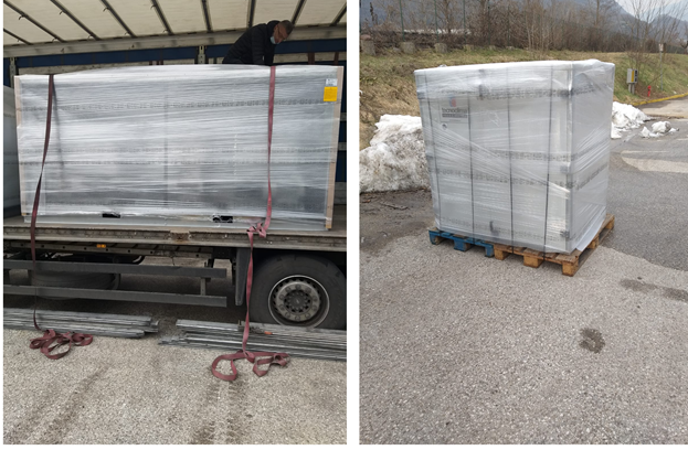 Газовый конденсационный воздухонагреватель ENERGY O/K 970 SP специального исполнения для установки вне помещений, горизонтального расположения, сторона для обслуживания – слева, горелка с модулирующим режимом мощности. Предназначен для отопления и вентиляции помещений.