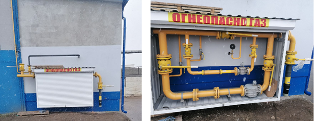 Для снижения давления газа со среднего P≤0,3 МПа до пониженного среднего P=0,03 МПа и поддержания его на заданном уровне перед отопительными котлами предусматривается ГРУ с рабочей и резервной линиями.
