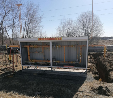 - узел редуцирования с рабочей и резервной линиями с регулятором давления газа Ду50 и встроенными предохранительно-запорными клапанами каждая