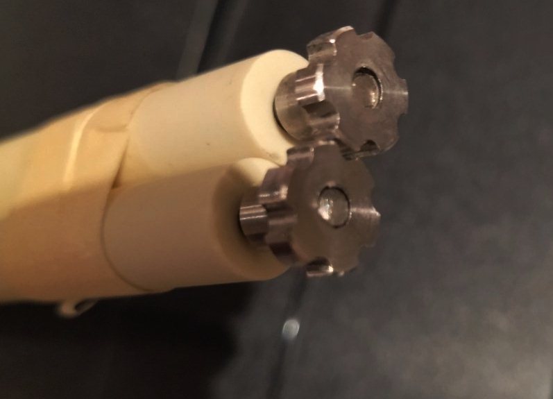 Электроды розжига и контроля факела изготавливаются из стального стержня (материал Кантал А) и имеют сплошную или местную изоляцию из фарфора. Крепление электрода в горелке выполняется в скользящей муфте, что позволяет легко регулировать положение электрода в горелке с учетом формы газового факела. Такая конструкция облегчает монтаж /демонтаж электрода без разборки других элементов горелки и техобслуживание занимает немного времени.