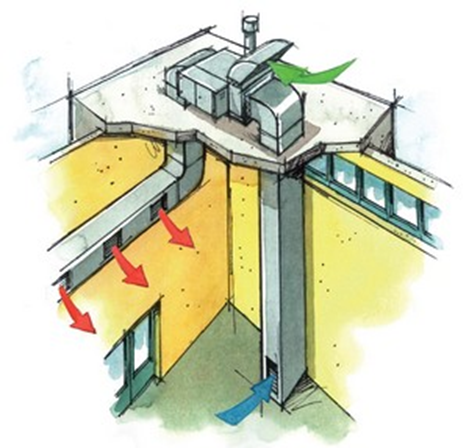 - Вентиляторной группы – один или несколько центробежных вентиляторов высокой производительности, электродвигатель (-и) и трансмиссия с регулирумым передаточным отношением;