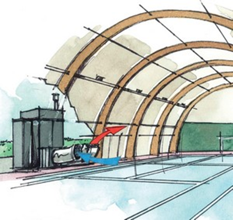 Применение воздухонагревателя WIMBLEDON для отопления прессостатической структуры (со 100% рециркуляцией)