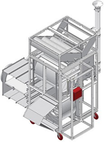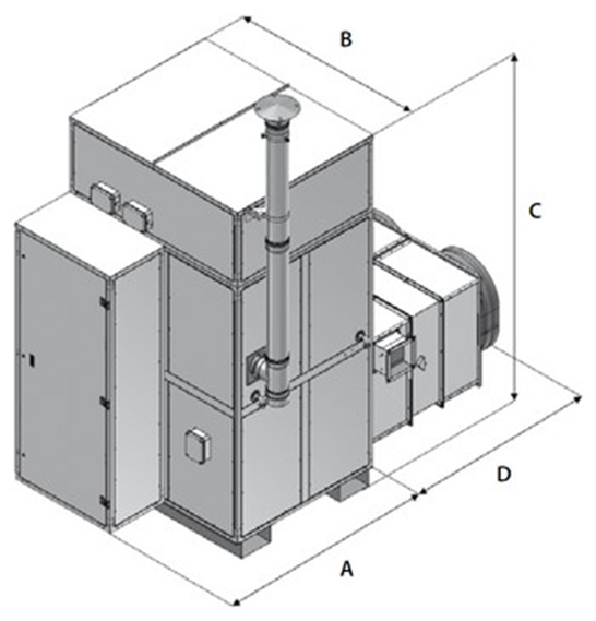 - Камера сгорания, цилиндрической или эллипсоидальной формы и прекрасно охлаждаемая во всех своих точках, изготовлена из жаропрочной нержавеющей стали марки AISI 430 (с содержанием хрома 18%). Топка – реверсивная, с низкой теплонапряженностью. Эффективная передача тепла дополнительно достигается благодаря воздушным потокам, движущимся в противоположных и поперечном напрвлениях;